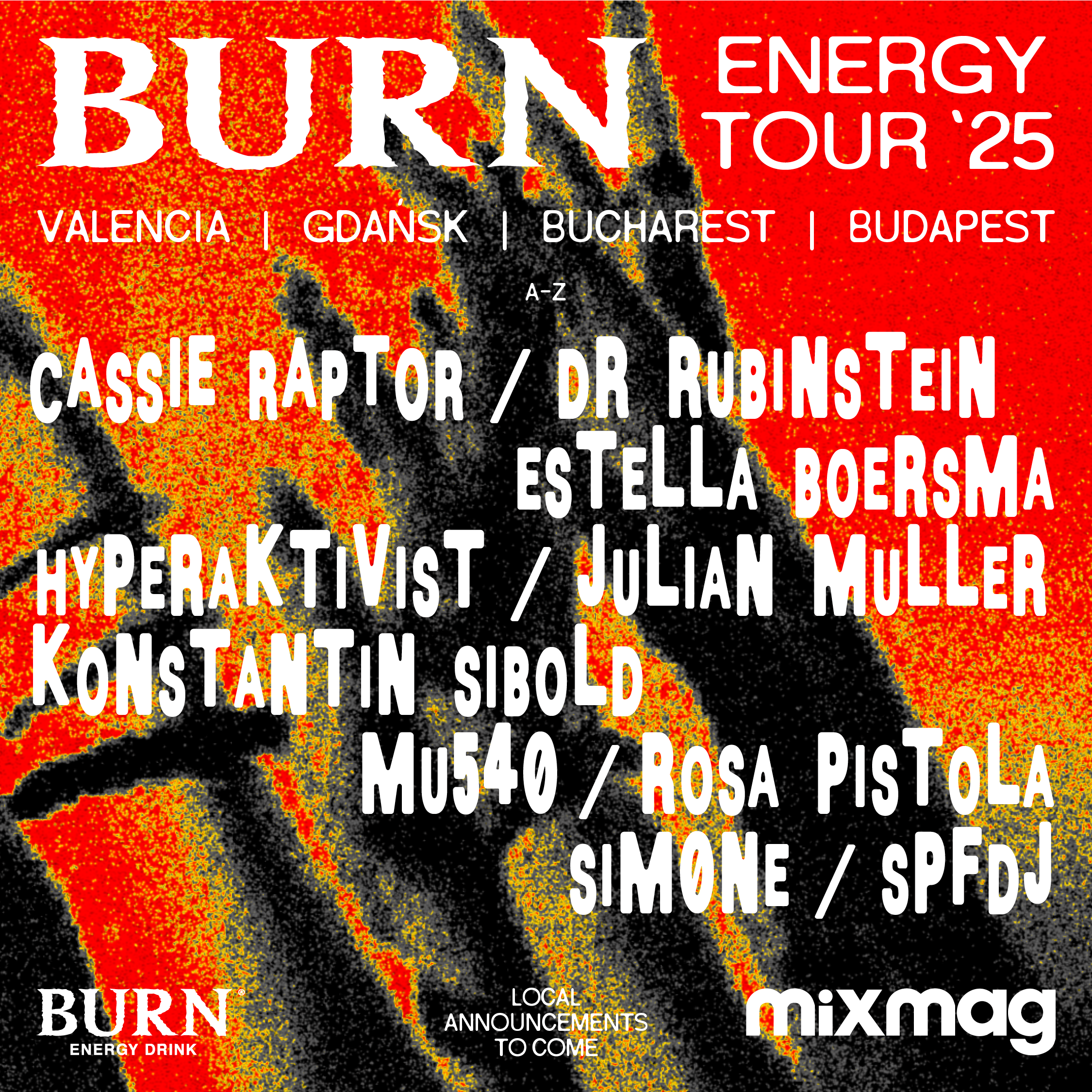 Z misją rozpalania undergroundu, Burn Energy Tour 2025 po raz kolejny skupi się na podsycaniu lokalnych subkultur i promowaniu artystów i dźwięków, które zmieniają muzykę taneczną.